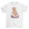 Awesome t-shirt design that features an illustration of a dog wearing a pumpkin hat and the quote "I hate Halloween"
